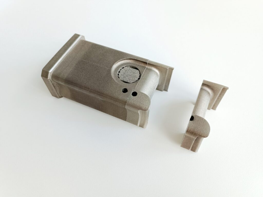 Na naší tiskárně Farsoon FS301M tiskneme kov přímo na obrobený základ. Výsledný díl pak lze znovu obrobit a dosáhnout požadované kvality i přesnosti.